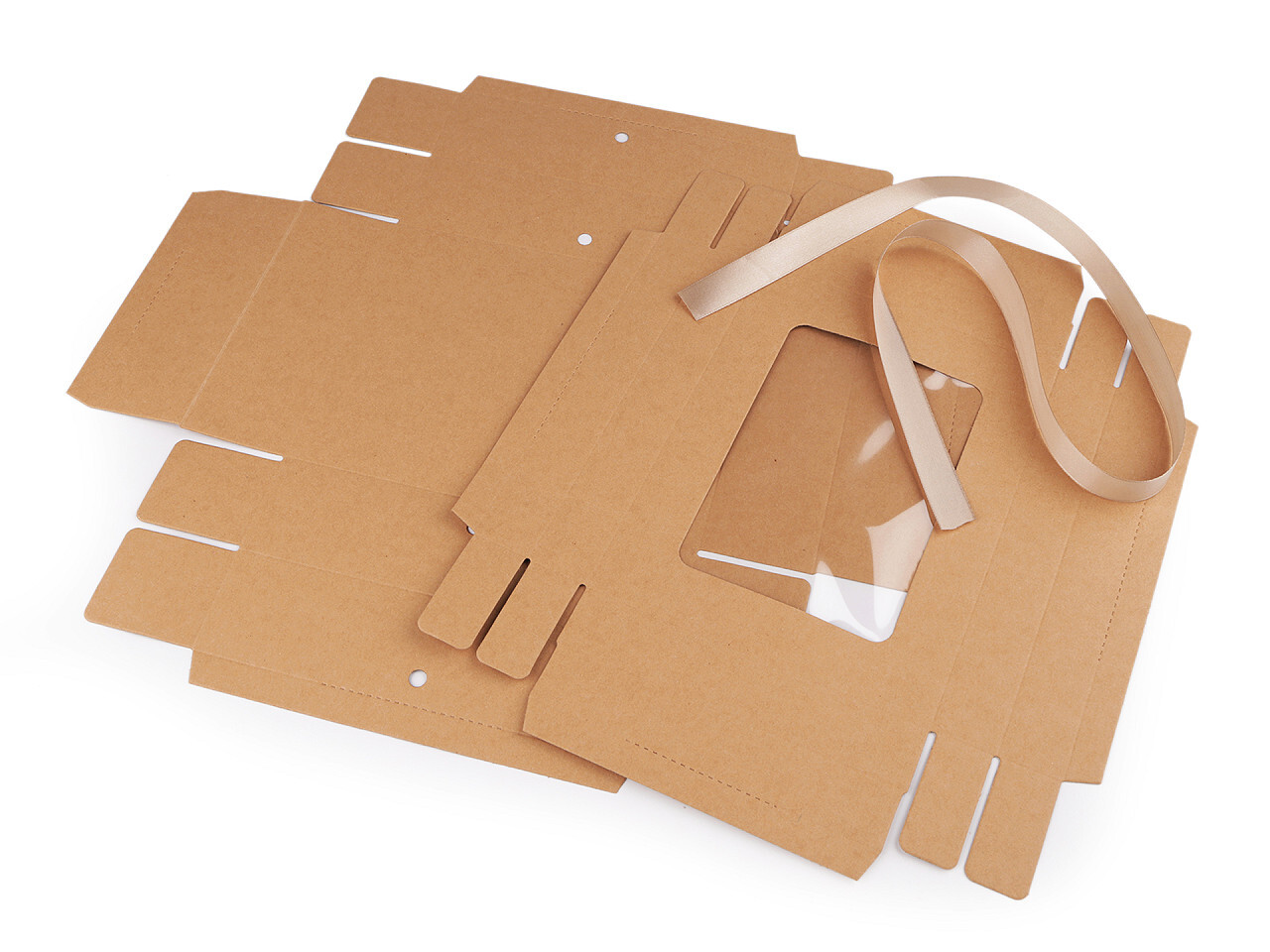Papírová krabička s průhledem a stuhou - 5 ks - hnědá přírodní