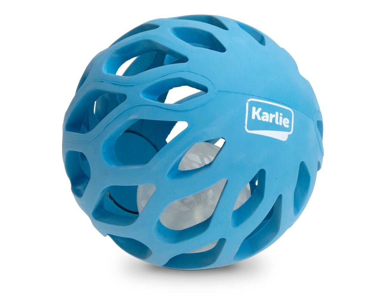 Karlie Gumová mřížkovaná koule s LED světlem uvnitř 11,5cm modrá