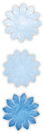 Kwiaty papierowe, średnica 25 mm, kolor: bladoniebieskie, jasnoniebieskie, niebieskie. 24 sztuki. prečítať celé
