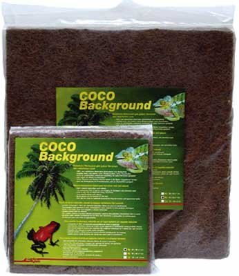 Kokosové pozadí je 100% přírodní produktvyrobený z kokosové vlákniny. Naprosto neobsahuje žádné chemikálie,pesticidy a hnojiva.Pro zpevnění byl jako lepidlo použitpřírodní kaučuk, který je pro zvířata naprosto bezpečný. Materiál sesnadno řeže a je velmi snadné jeho velikost přizpůsobit teráriím...