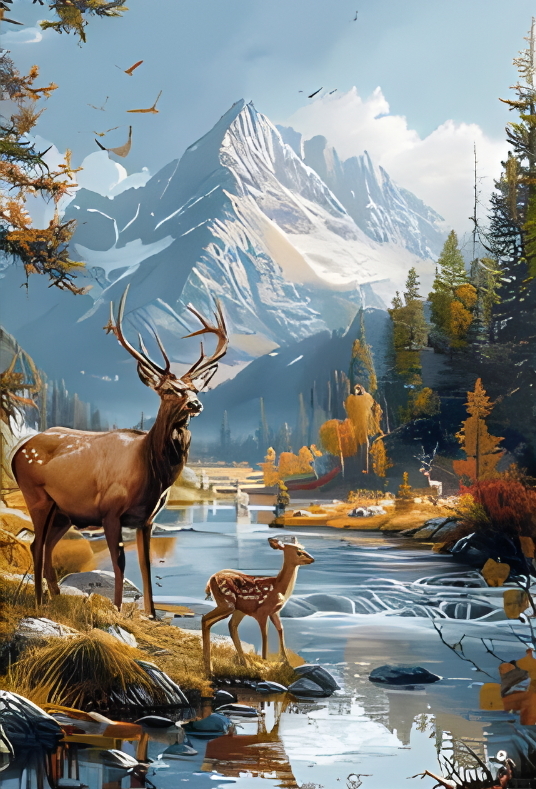 Diamantové malování Jelen v horách 30 x 40 cm