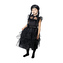Vnes trochu tajemna mezi své kamarády s tímto skvělým kostýmem, který je ideální pro všechny fanynky temného nadpřirozena. Černé gotické šaty s volány zdobí opasek se sponou. Doporučujeme kombinovat s černou parukou spletenou do copů a tmavými očními stíny. Kostým velikosti S je určen pro děvčata ve věkovém rozmezí 4 - 6 let (110 - 116 cm).