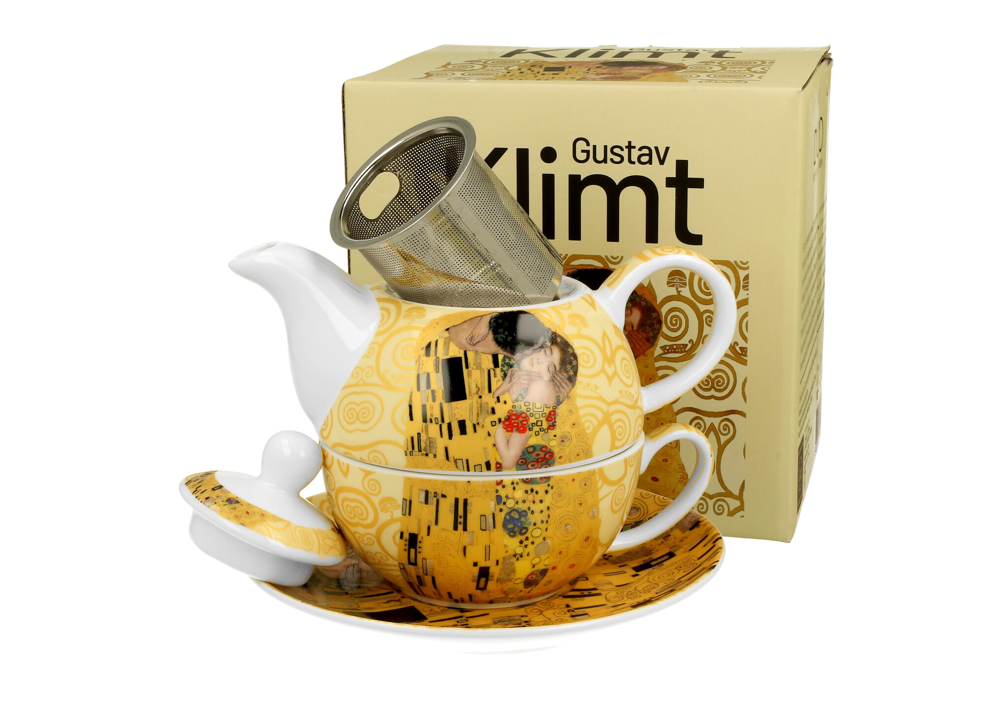 Filiżanka z dzbankiem i zaparzaczem THE KISS ECRU inspired by Klimt