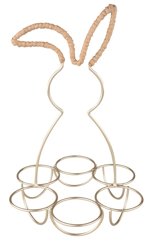 Držák na vajíčkaDekorační držák na vajíčka ve tvaru zajíčka skvěle doladí vaši velikonoční atmosféru!Moderní design ve zlatém provedení se hodí téměř do každého interiéru a jistě potěší všechny koledníky.Držák je určený na šest vajíček.  prečítať celé