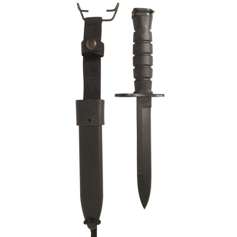 Reprodukce bajonetu M7 s pouzdrem M10/M16.Od německé značky Mil-Tec.Oproti obdobným replikám lze tuto opravdu nasadit na pušku M16 a použít jako bajonet! Lze využívat jako běžnou dýku pro běžné potřeby, čepel je ostrá a lze s ní řezat.Vlastnosti:• pochva bajonetu je totožná s pouzdrem pro bajonet M10• pochva vyrobena z plastu s možností upevnění jak k opasku tak i např. k noze• čepel je takticky černě zabarvena, je vyrobena z uhlíkové oceli