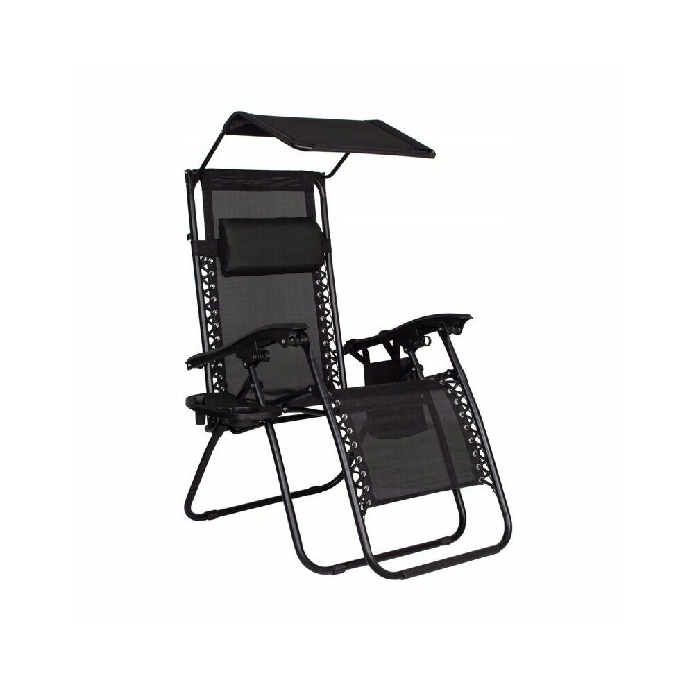 Zahradní polohovací křeslo se stříškou SPRINGOS ZERO GRAVITY černé