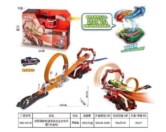 Tor z wyrzutnią o długości 130cm, posiadający auto które po zetknięciu z ciepła/zimną wodą zmienia kolor prečítať celé
