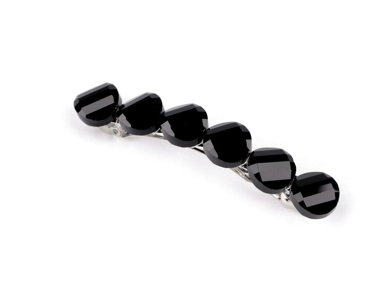 Francouzská spona zdobená akrylátovými broušenými kameny luxusně ozdobí váš účes. Nádherně se leskne a přitahuje pozornost. Ať už máte jemné prameny nebo husté lokny, touto sponou snadno sepnete vlasy do copu nebo vytvoříte elegantní drdol, který bude vypadat, jako kdyby ho vytvořil profesionál. Spona má kvalitní celokovové provedení, zacvakávací mechanismus je pevný. Délka části pro vlasy je 5,5 cm.