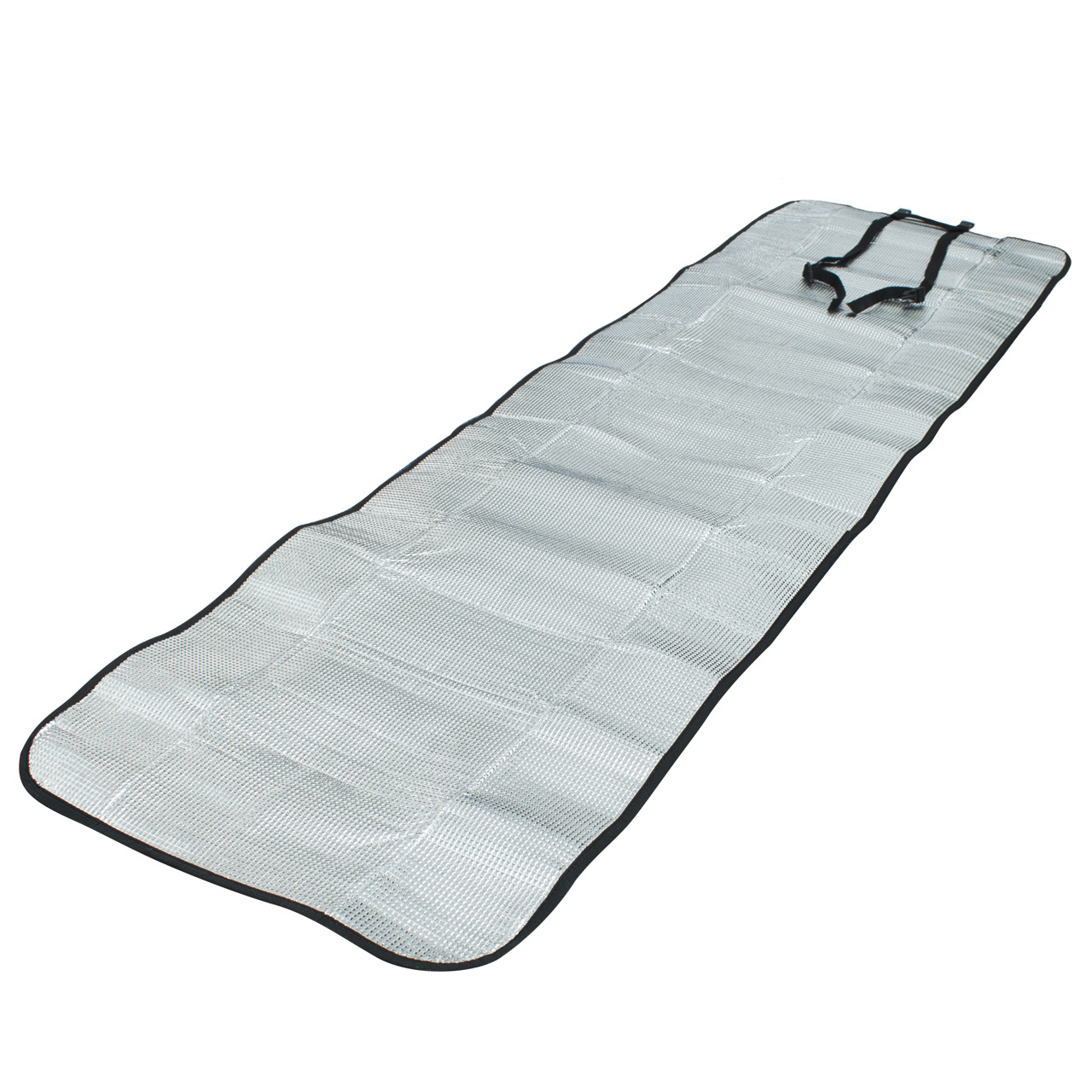 Táto karimatka je navrhnutá tak, aby vás spoľahlivo ochránila pred chladom, vlhkosťou i špinou. Reflexná hliníková fólia odráža späť vyžiarené teplo, ak ju položíte fóliou nahor, čím zvyšuje tepelný komfort bez zbytočnej hmotnosti navyše. Vďaka našitým popruhom ju ľahko zviniete do kompaktného balíčka, ktorý môžete pohodlne nosiť ako malú tašku. Popruhy však nie sú určené na zavesenie na batoh, aby nedošlo k ich poškodeniu.