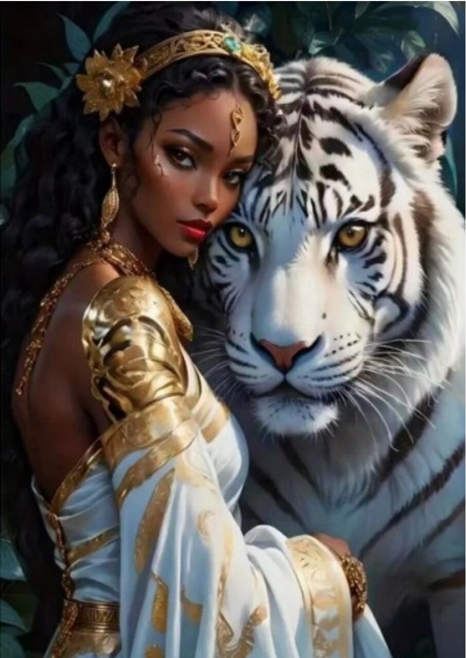 Diamantový obrázek - žena s tygrem 30 x 40 cm