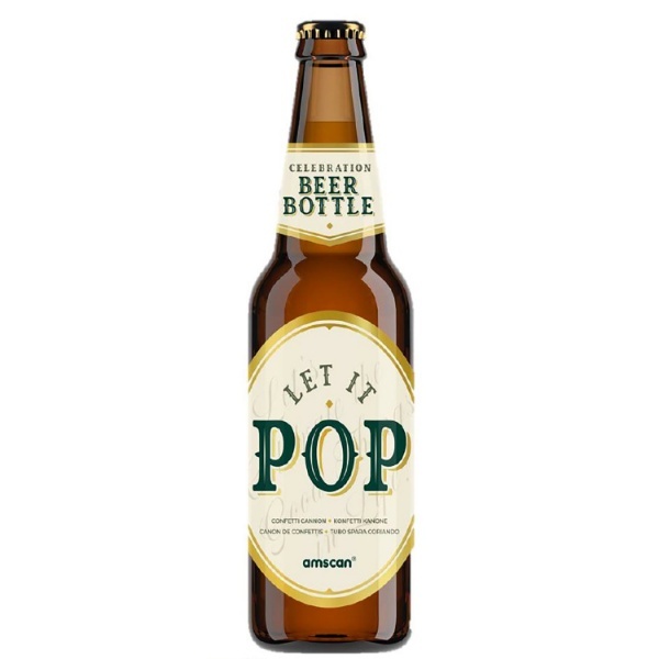 Vystřelovací konfety které jsou umístěny v pivní lahvi, opravdu. Skvělý doplněk na narozeninovou oslavu milovníka piva. Velikost lahve je 23 cm a po otočení spodní části vyletí ven zlaté konfety ve tvaru obdélníku. Vystřelovací konfety, jsou skvělý prostředek k vytvoření wow efektu.