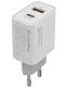 COLORWAY 1x USB a 1x USB-C/ turbo síťová nabíječka/ 30W/ 100V-240V/ Bílá