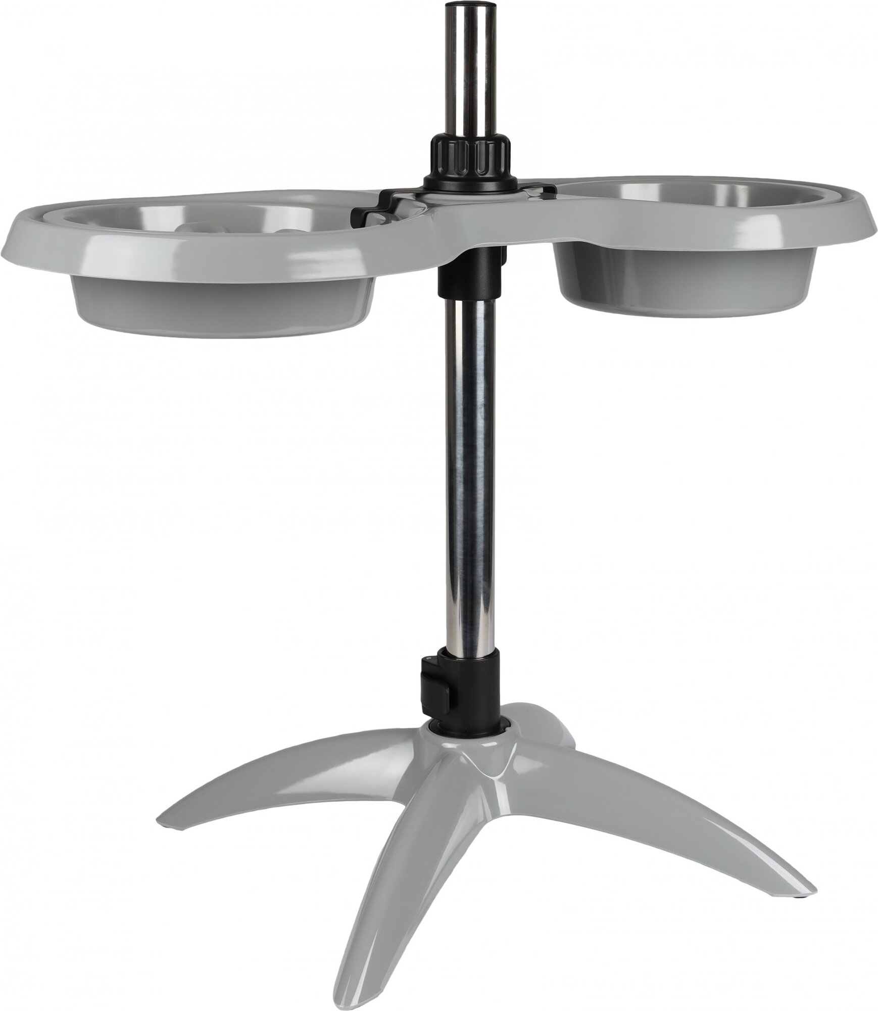 S praktickým stojanem se dvěma miskami SUVI budete mít jídlo a vodu pro svého psa vždy na jednom místě. Díky gumovým nožkám je stojan protiskluzový. Misky jsou nastavitelné až do výšky 54 cm a uchytí se pomocí rychlé svorky. Misky lze mýt v myčce. Objem misek: 1100 ml a 1500 ml