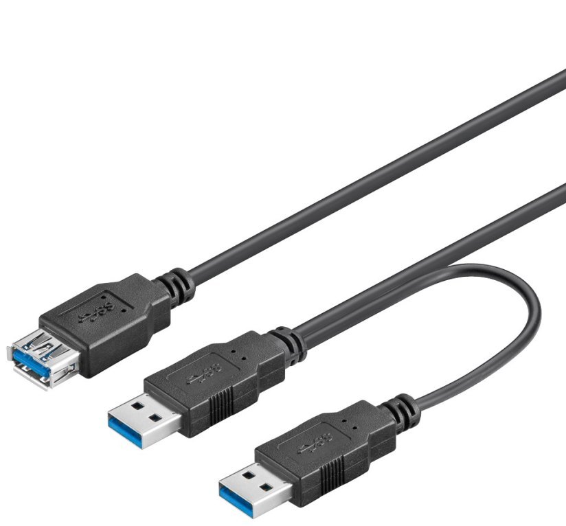 PremiumCord USB 3.0 napájecí Y kabel A/M + A/M -- A/F
