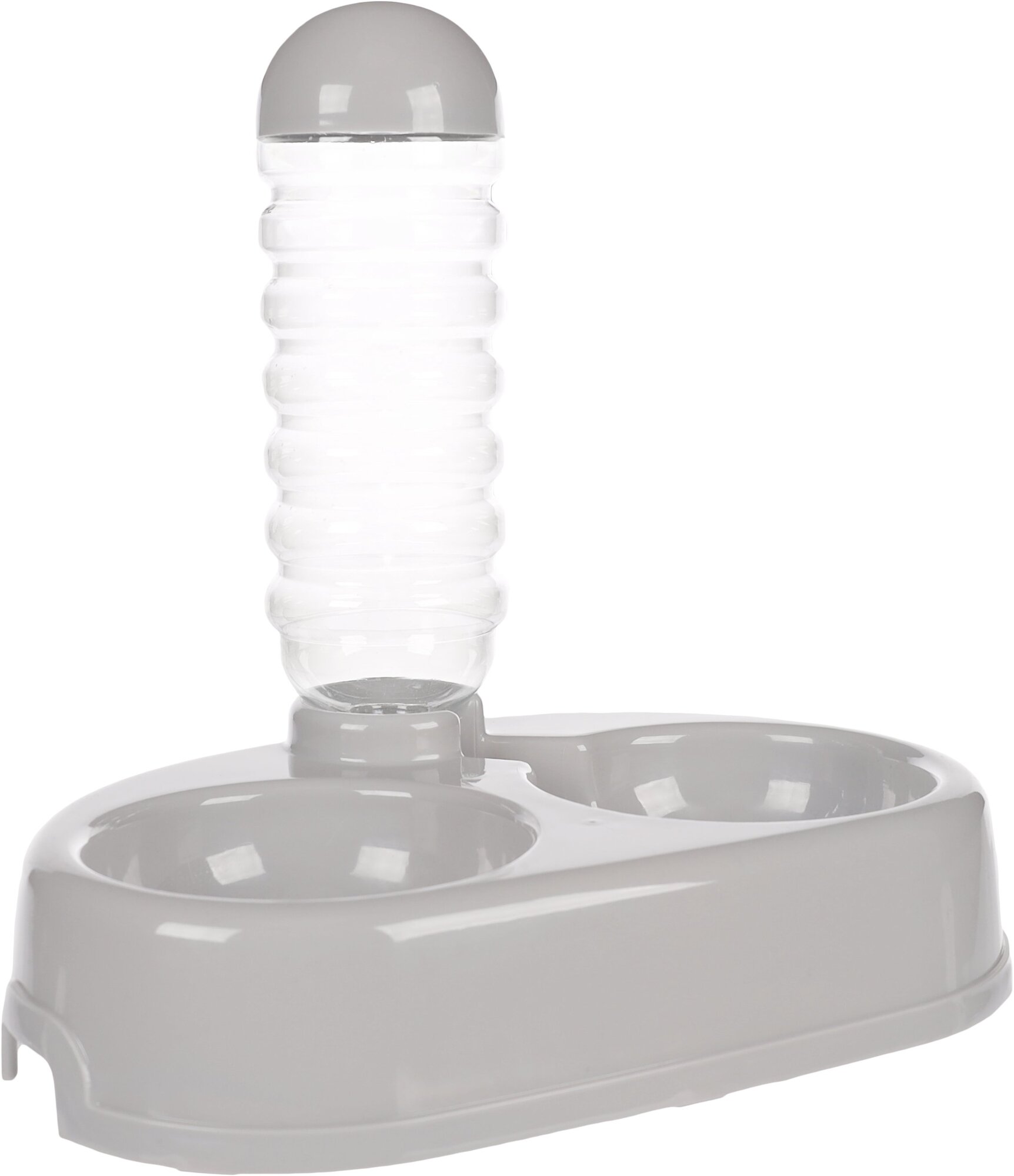 Praktická dvojmiska na jídlo i vodu, kdy do jedné misky automaticky proudí voda ze zásobníku a ze druhé Váš pejsek nebo kočka baští nějakou dobrotu.