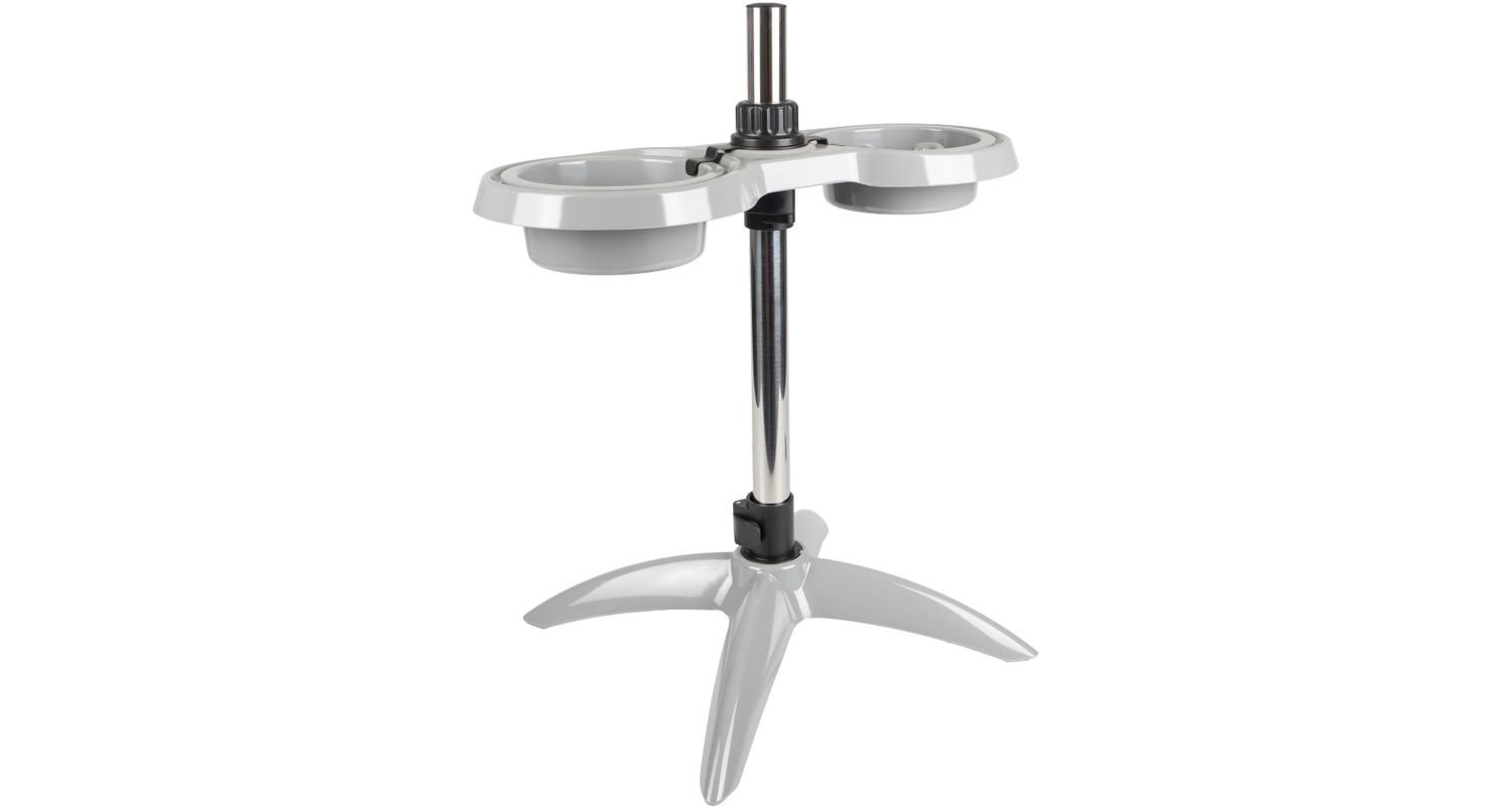 S praktickým stojanem se dvěma miskami SUVI budete mít jídlo a vodu pro svého psa vždy na jednom místě. Díky gumovým nožkám je stojan protiskluzový. Misky jsou nastavitelné až do výšky 54 cm a uchytí se pomocí rychlé svorky. Misky lze mýt v myčce. Objem misek: 600 ml a 800 ml