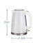 Varná konviceRussell Hobbs 26381-70Texturovaný design s prvky z broušené nerezové oceliPříkon 2 400 WKapacita 1,7 lZdokonalená nálevkaUkazatel množství vodyFunkce zóny rychlého varuUkazatele na 1/2/3 šálky360° základna s úložným prostorem pro kabelStiskem otevíratelné víko61 cm dlouhý černý...