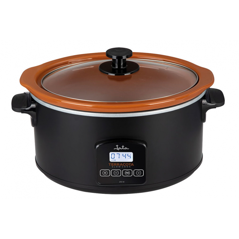 Terakotový pomalý hrnec JATA JEOL2145Terakotový pomalý hrnec. Kapacita 5 l. Terakotová nádoba - přírodní materiál se skvělými vlastnostmi pro zdravé vaření. Terakotovou nádobu je možné také použit samostatně, např. v troubě při teplotě až 250 °C. LCD Display. Časovač až na 20 hod.. Ideální pro 5...