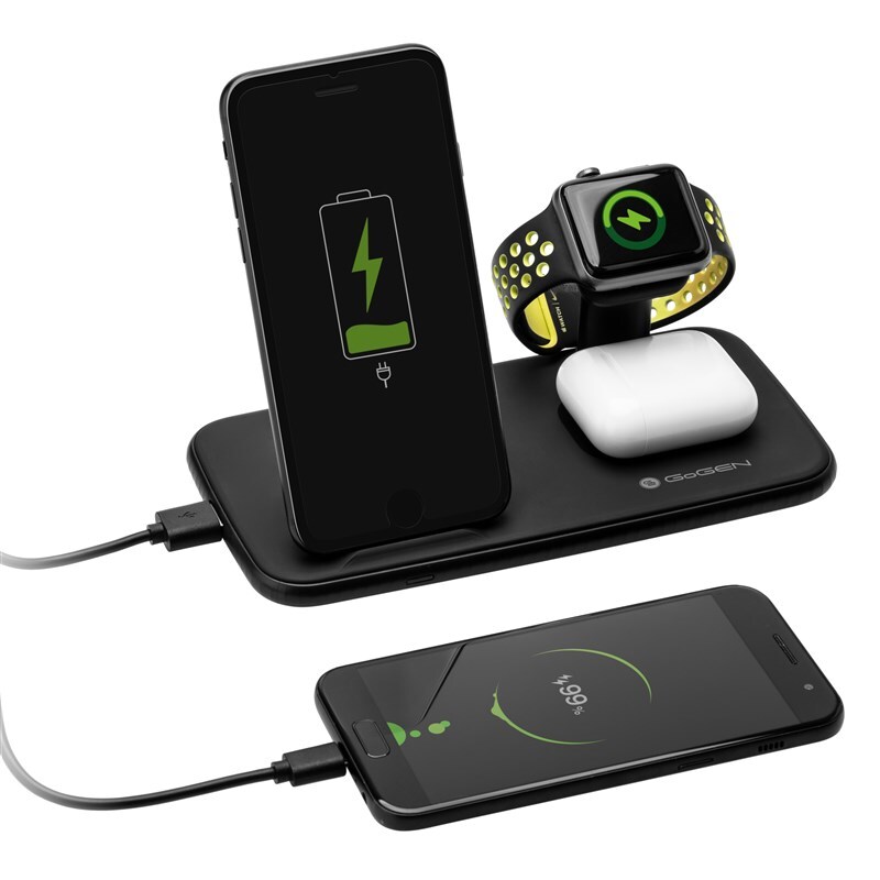 GoGEN Bezdrátová nabíječka 4v1, CHST401, černá