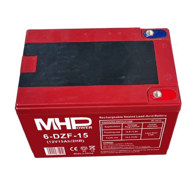 Baterie olověná 12V / 15 Ah MHPower 6-DZF-15 GEL Trakční, M5, Deep CycleTrakční gelová baterie MHPower 6-DZF-15 je spolehlivým zdrojem energie navrženým pro náročné aplikace, které vyžadují hluboké cykly nabíjení a vybíjení. S kapacitou 15Ah a napětím 12V je ideální pro napájení elektrických...
