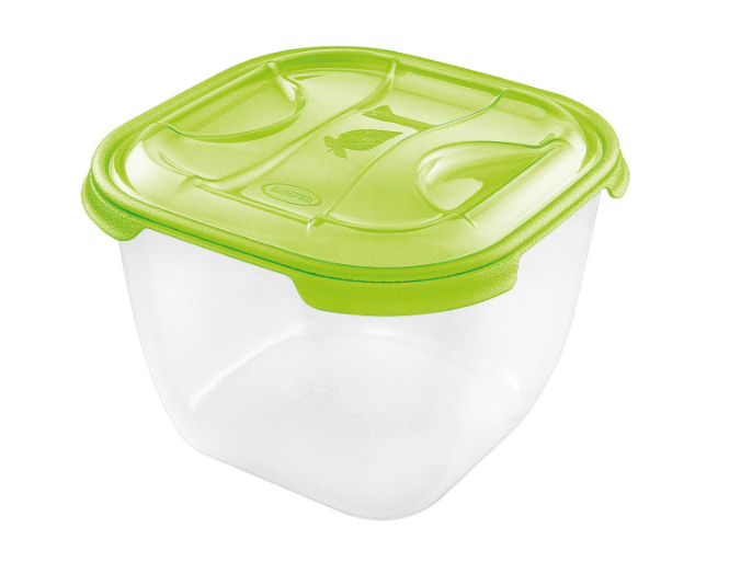 Dóza na potraviny NUVOLA 3 l čtverec transparentní/zelená;19.5X19.5XH14CM;objem L:3