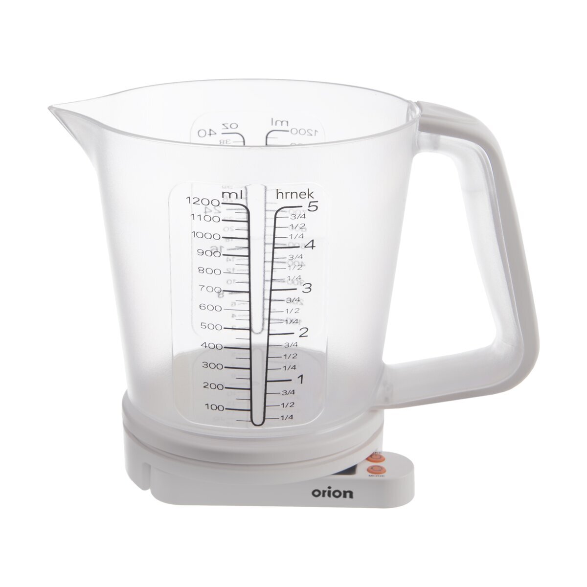 Kuchyňská digitální váha s odměrkou má vysunovací displej a nabízí velmi snadné a pohodlné používání. Váží v jednotkách: g/oz/ml, max. kapacita 5 kg, na odměrce vyznačeny stupnice pro měření v ml od 50 ml do 1200 ml, pro šálky od ¼ do 5 šálků, v oz od 2 do 40 oz. Napájení na 2x1,5 V AAA...