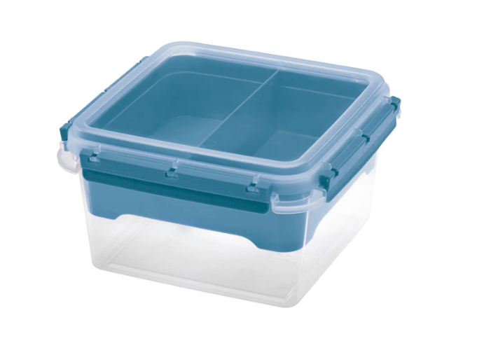 Dóza na potraviny FRESH SYSTEM 2,25 l čtverec, s dělenou mističkou transp/modrá;19X19XH10.5CM;objem L:2,25