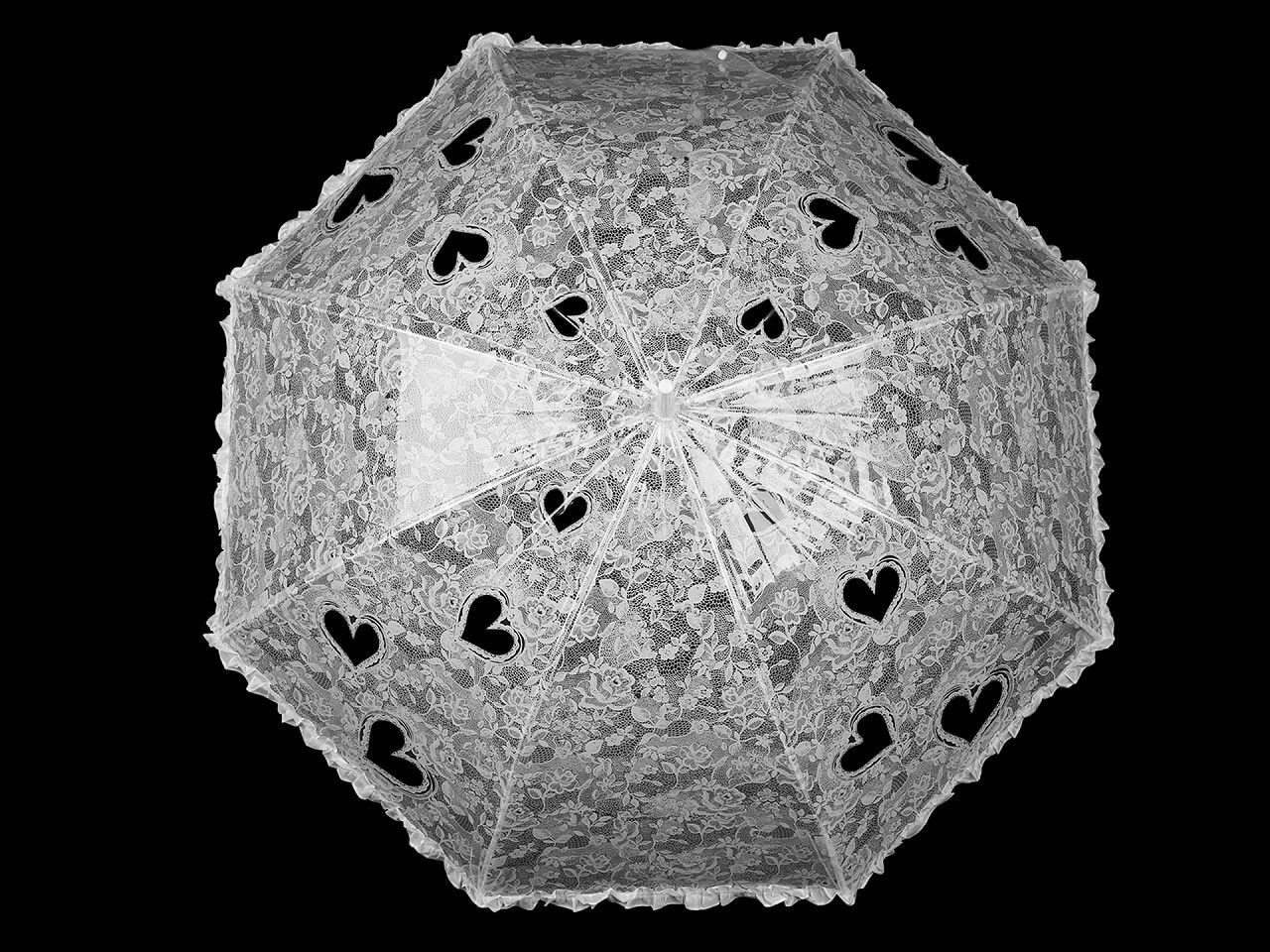 Dámský průhledný deštník je velice romantický, ozdobený potiskem krajky a srdcí. Okraj má zakončený nařaseným volánkem. Je ideální pro novomanžele, kteří chtějí mít jistotu, že žádné počasí nezastíní jejich velký den. Skvěle se hodí také na focení, kde se může stát stylovým a estetickým...