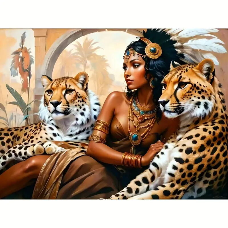 Diamantový obrázek - dáma s tygry 30 x 40 cm