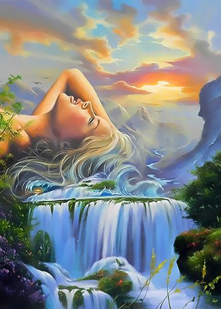 Diamantový obrázek - dívka a vodopád 30 x 40 cm