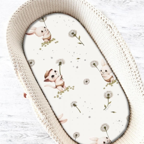 Prostěradlo do kočárku, koše, bavlna, Kocourek a pampeliška - bílá; 90x40