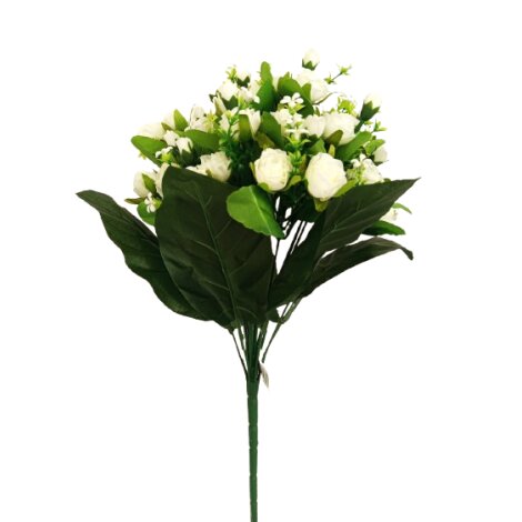 Růže - kytice poupat s přízdobou x 18 stonků; v. 44 cm; materiál plast a textil. Pěkné, bohatě kvetoucí. prečítať celé