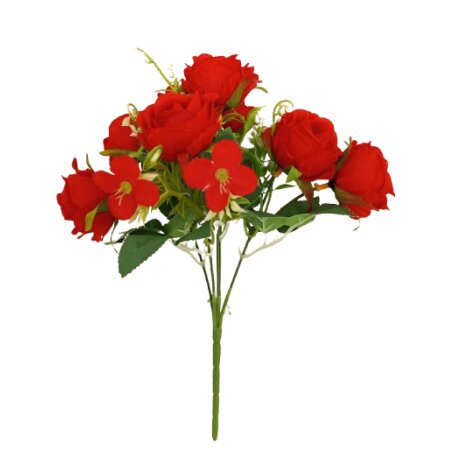 Růže - kytice s přízdobou x5 stonků; v. 27 cm; x7 květů 3x4,5 cm; materiál plast a textil. Pěkné, jemné a dekorativní. prečítať celé