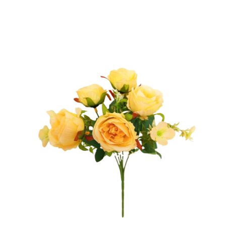 Růže - kytice s přízdobou x5 stonků; v. 27 cm; x7 květů 3x4,5 cm; materiál plast a textil. Pěkné, jemné a dekorativní. prečítať celé
