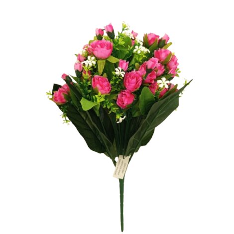 Růže - kytice poupat s přízdobou x 18 stonků; v. 44 cm; materiál plast a textil. Pěkné, bohatě kvetoucí. prečítať celé