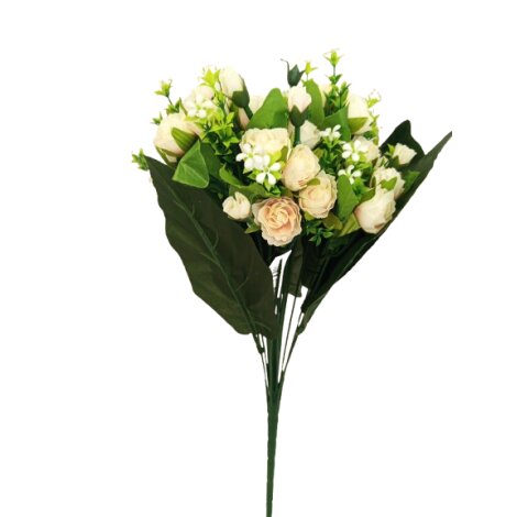 Růže - kytice poupat s přízdobou x 18 stonků; v. 44 cm; materiál plast a textil. Pěkné, bohatě kvetoucí. prečítať celé