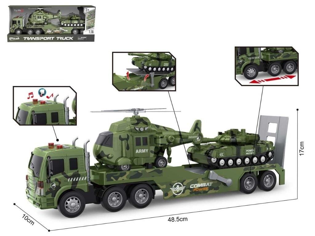 Auto laweta wojskowa + pojazdy x2 światło, dźwięk open box 52x11,5x21cm prečítať celé