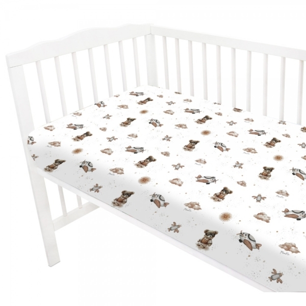 Prostěradlo do postýlky 120x60cm, bavlna, Méďa pilot - bílá, béžová; 120x60