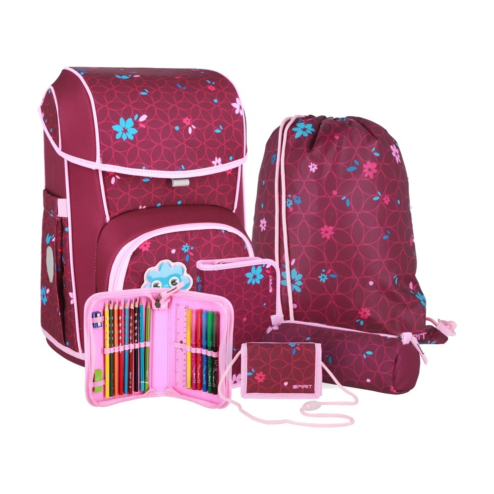 Sada obsahuje: školskú tašku, vrecko na prezúvky, naplnený peračník, okrúhle puzdro, peňaženku a nášivku na suchý zips s dizajnom na ozdobenie tašky.Kvalitná, pevná taška vhodná pre deti na 1. stupni ZŠ.Vlastnosti:priedušný, anatomicky tvarovaný a vystužený chrbát "Spirit Ergo & Air Flow System"...