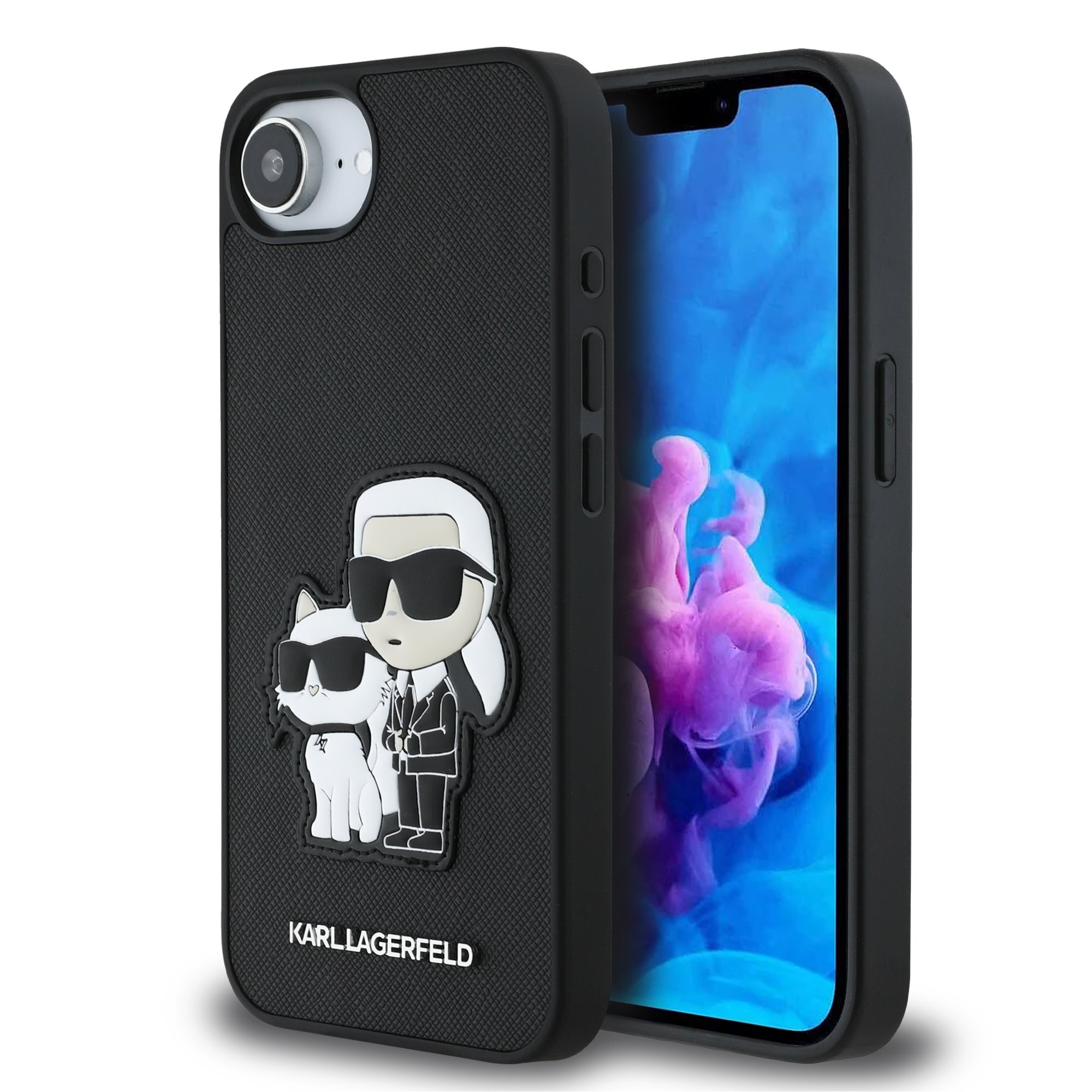 Karl Lagerfeld PU Saffiano Karl and Choupette Zadní Kryt pro iPhone 16e Black
