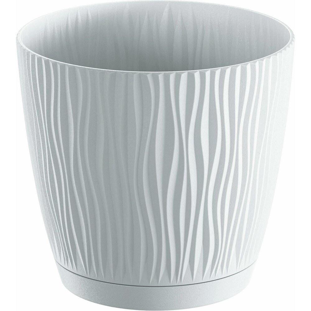 Květináč s miskou SANDY P - bílý 23,9 cm