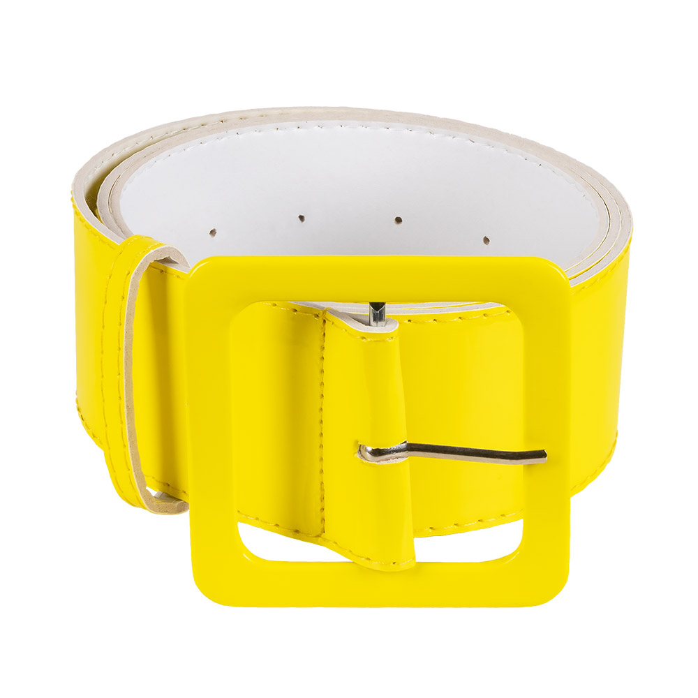 Dámský opasek s přezkou, retro. Tento neonově žlutý pásek pro dámy se hodí ke všemu a ke každému outfitu dodá retro nádech. Tento doplněk se bude skvěle hodit na párty 80. let nebo na maškarní párty. Materiál: 79% pvc, 13% pet, 8% železo Rozměr: 120 x 5,5 cm Barva: neonově žlutá