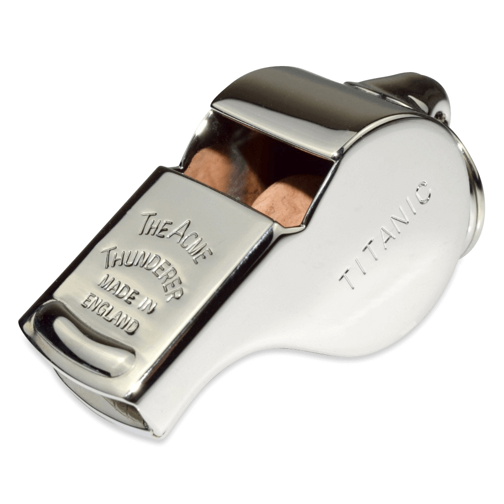 Profesionální píšťalka od známého výrobce ACME, který se specializuje výhradně na výrobu a prodej píšťalek. Píšťalka je vyrobena z masivní mosazi a je poniklovaná. Má velmi výrazný a dalekosáhlý zvuk.Jedná se o autentickou repliku píšťaly na lodi Titanic, původně dodaná a použitá v roce 1912.Dodávané včetně certifikátu pravosti.Vyrobeno v Anglii.
