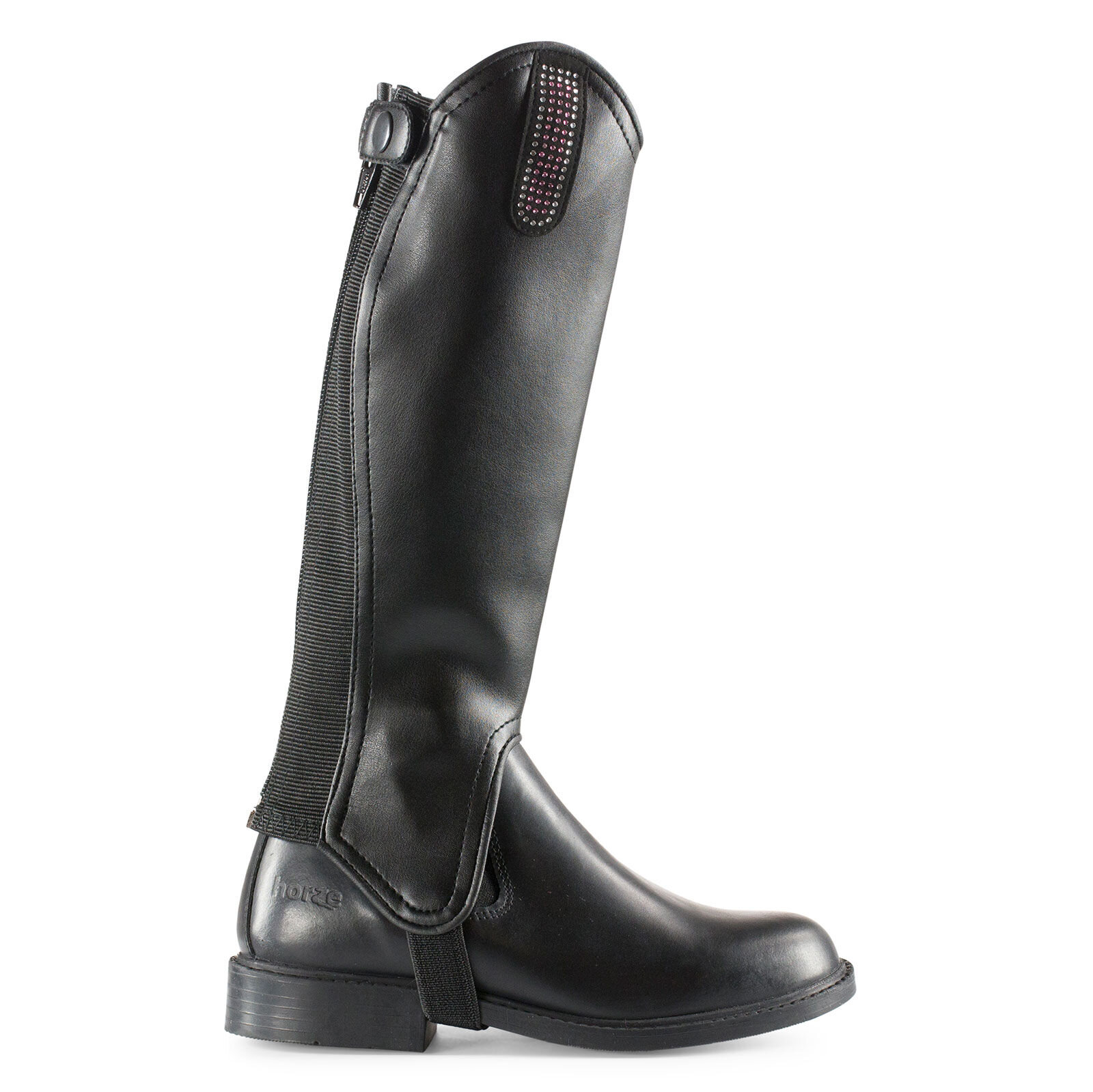 Detaily z křišťálových drahokamů v horní části u těchto chapsů pro děti velikosti dodávají zábavnou jiskru běžnému ježdění. Tyto syntetické chapsy mají vysoce kvalitní zipy, aby vydržely opakované použití.