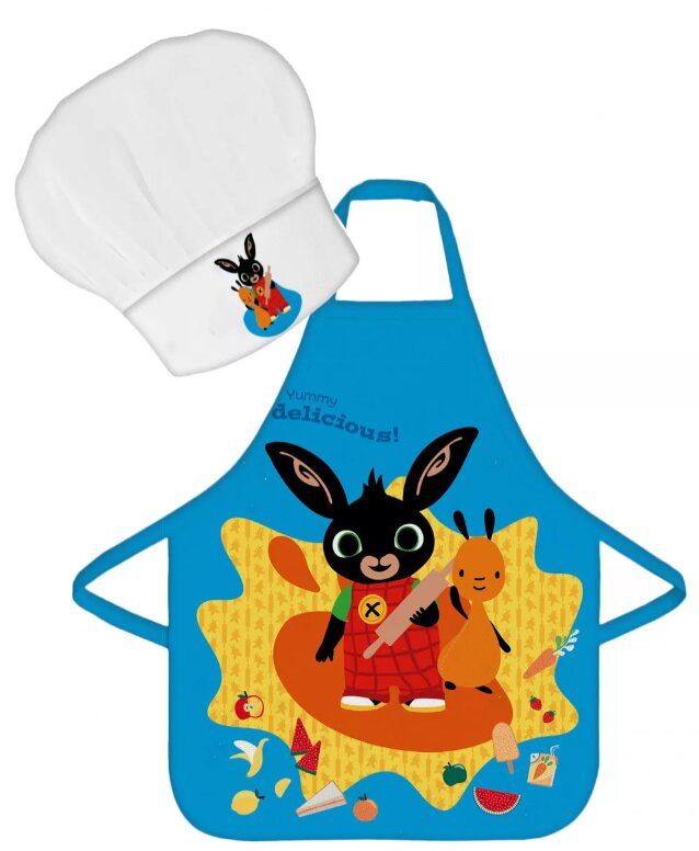 Dětská zástěra ZAJÍČEK BING A FLOP set s čepicí modrý