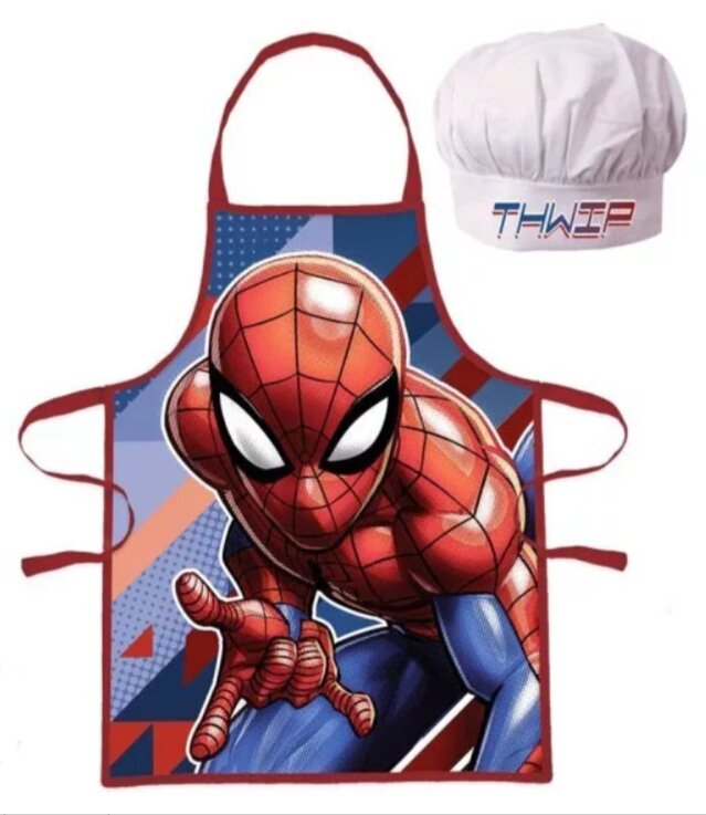 I slavný Spiderman má rád dobré jídlo. A jako správný kuchař potřebuje super kuchařskou zástěru s čepicí pro šéfkuchaře. Tento nádherný setík splňuje všechny požadavky, tak neváhejte s koupí.Velikost: cca 3-8 letMateriál: 100% polyesterÚDRŽBA A PRANÍ: pokud chcete, aby produkt vydržel co nejdéle...