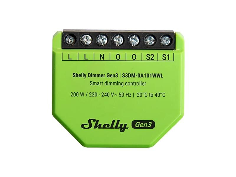 Shelly Dimmer Gen3 je kompaktní jednookruhový stmívač světla, který umožňuje přesné ovládání jasu osvětlení z chytrého telefonu, tabletu, počítače nebo systému domácí automatizace. Funguje prostřednictvím místní sítě Wi-Fi bez nutnosti použití dalšího rozbočovače a podporuje také vzdálené ovládání prostřednictvím cloudu. Může pracovat s nulovým vodičem i bez něj. Zařízení také nabízí zesílení signálu Wi-Fi, spolupráci s Bluetooth a BLE Gateway a řadu možností automatizace, včetně plánů, skriptů a integrace se systémy, jako jsou Home Assistant, Google Home, Alexa nebo SmartThings.