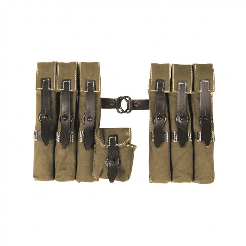 Sumky používané k německému samopalu MP38 a upravené verzi MP40. Sumky na 6 zásobníků a s kapsičkou na nabíječku.Cena je za obě části.Rozměry:(každá část má tyto rozměry)šířka 15 cm (bez malé kapsičky)výška 25,5 cm prečítať celé