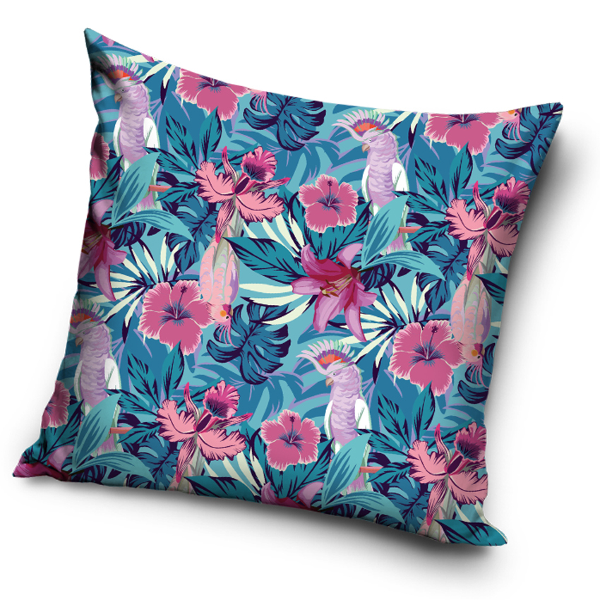 Dekorační povláček s barevnými papouškyDekorační povlak na polštářek Tropická Zahrada je vyrobený ze 100% polyesteruPovlak na polštářek nadchne především milovníky tropických pralesů a cizokrajných zahradBarevný vzor květin a listů doplňují růžoví a fialoví papoušciPovláček bude skvělou dekorací...