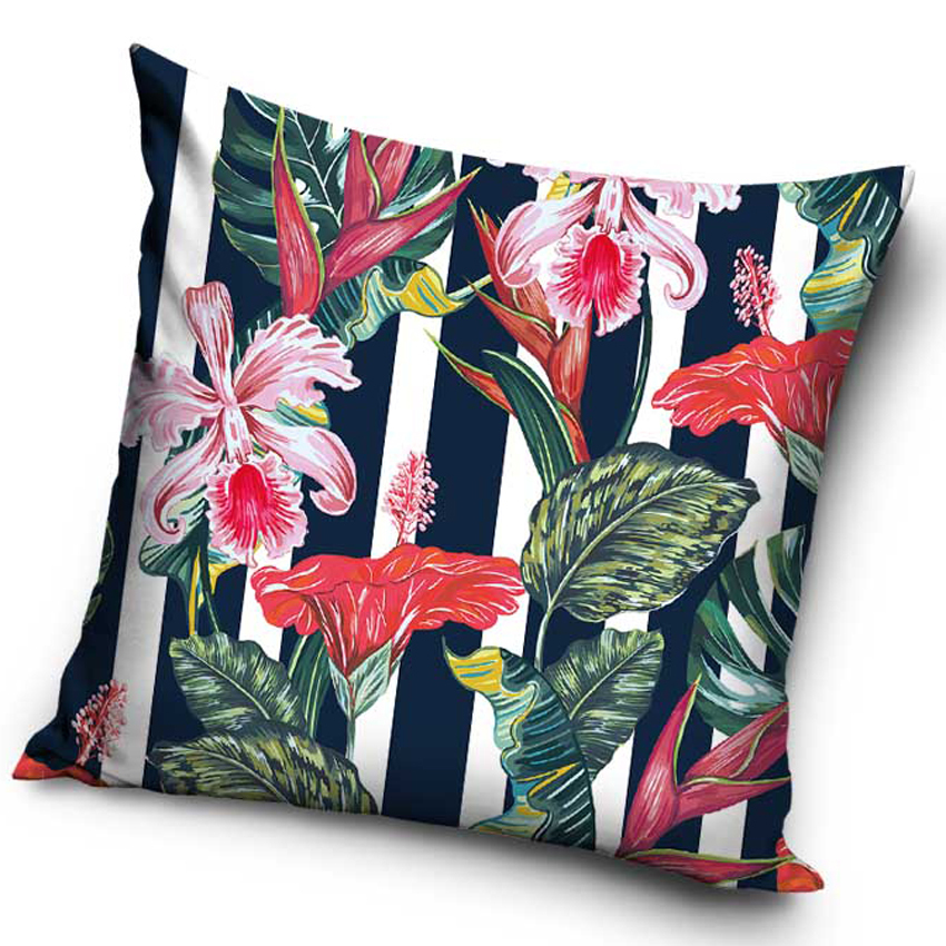 Dekorační povlak s červenými květyDekorační povlak na polštářek Květinový Ráj je vyrobený ze 100% polyesteruNa povláčku jsou vyobrazeny jasně červené květy amarylisů, jemné růžové květy lilií a vzor doplňují různé zelené listyPodklad povláčku je bílý se svislými černými pruhyPovlak na polštářek...
